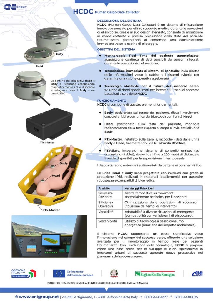 È con grande soddisfazione che annunciamo la conclusione del progetto HCDC (Human Cargo Data Collector), un sistema d’avanguardia per il monitoraggio in tempo reale di pazienti traumatizzati durante missioni di elisoccorso.